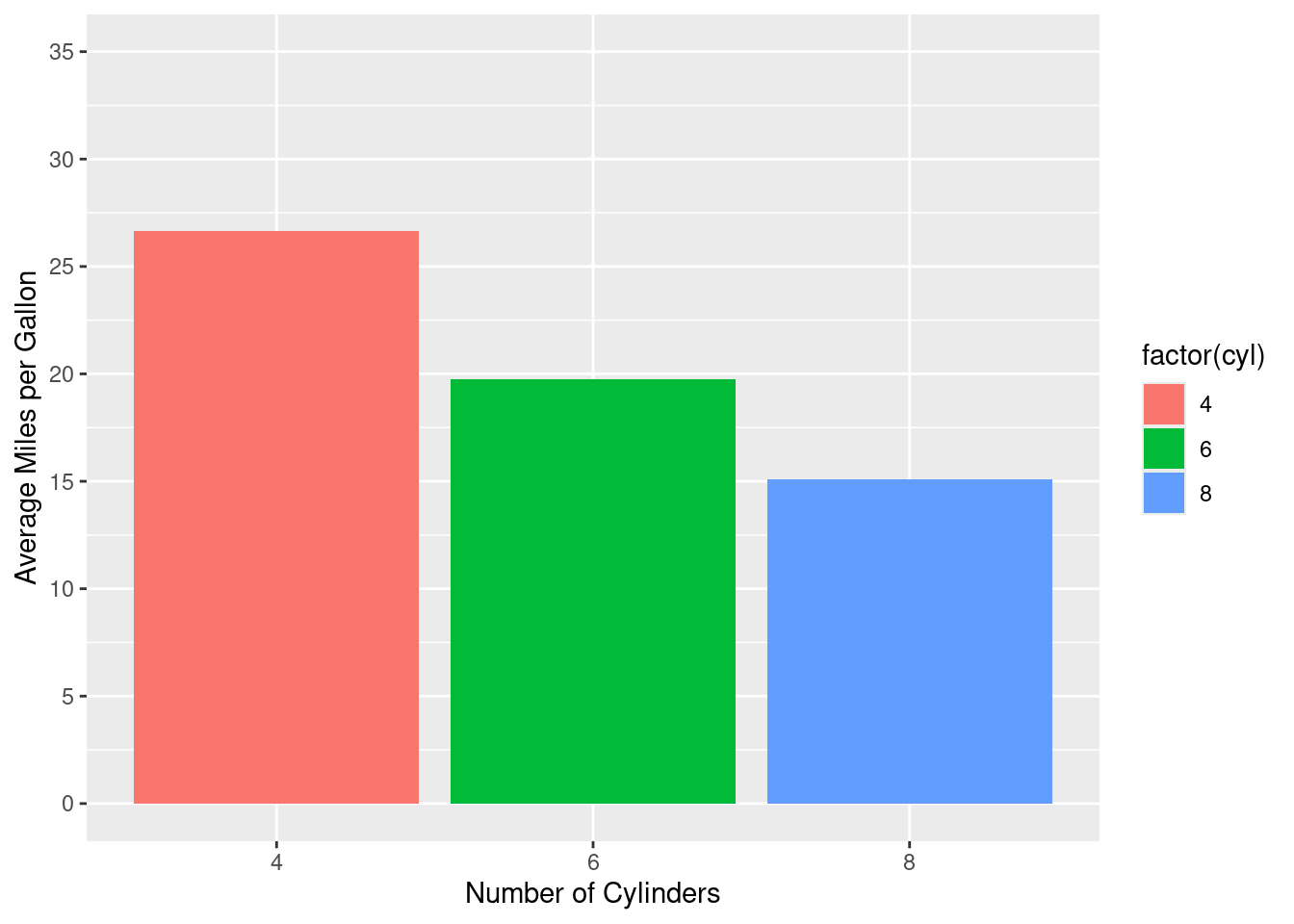 scale_x_discrete(name = "Number of Cylinders") + # Customizing the x-axis