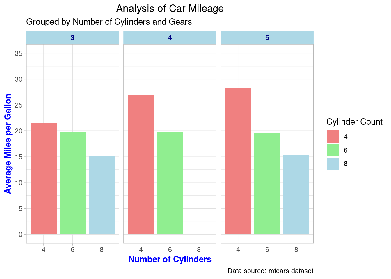 subtitle = "Grouped by Number of Cylinders and Gears", # Subtitle