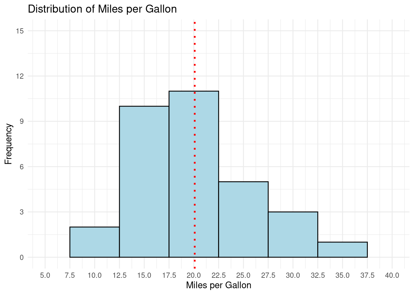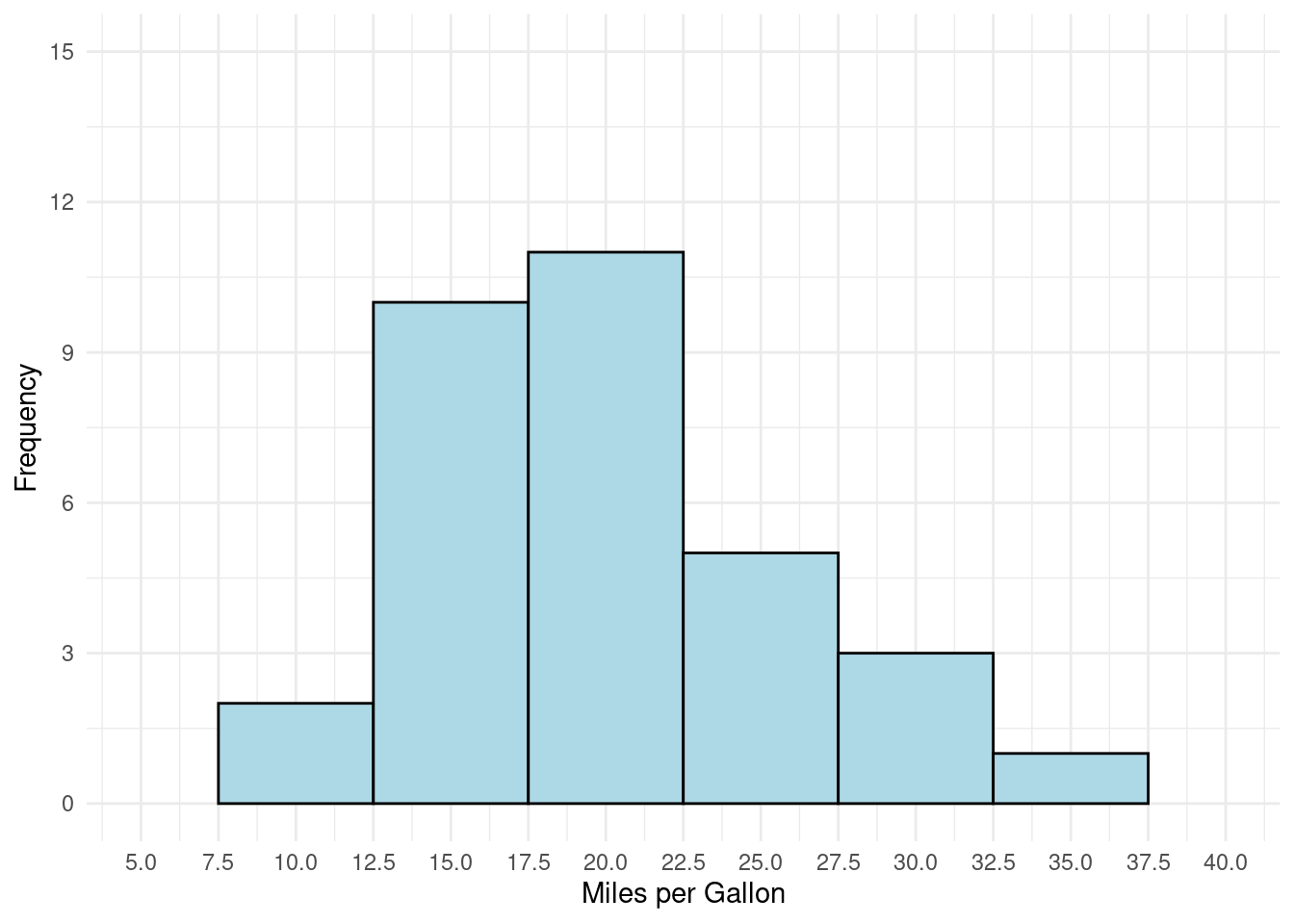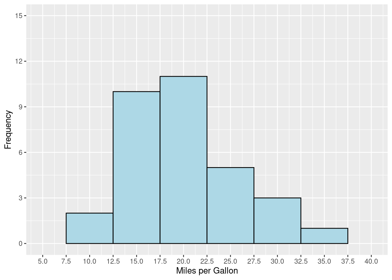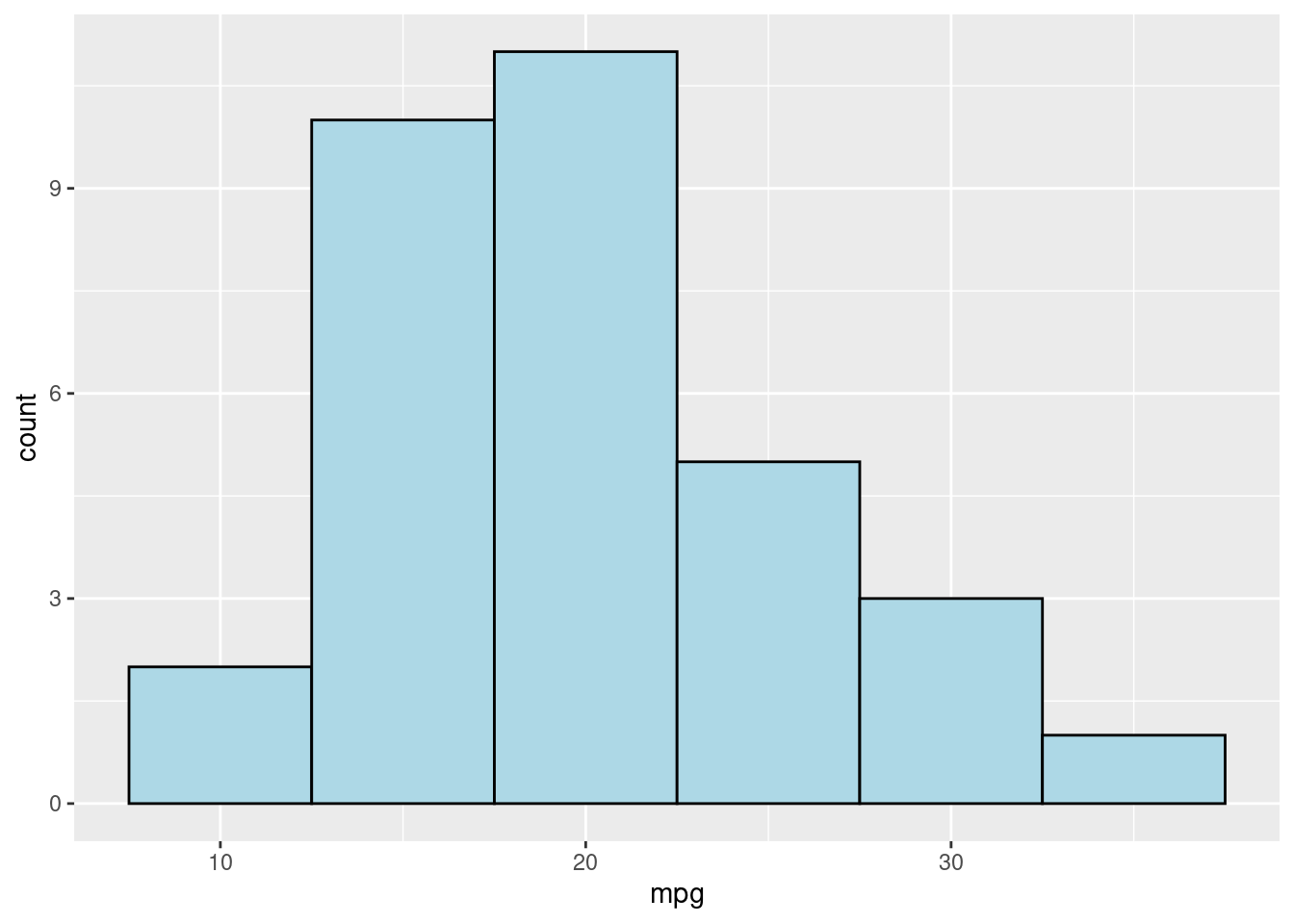 p <- ggplot(data = mtcars, aes(x = mpg))